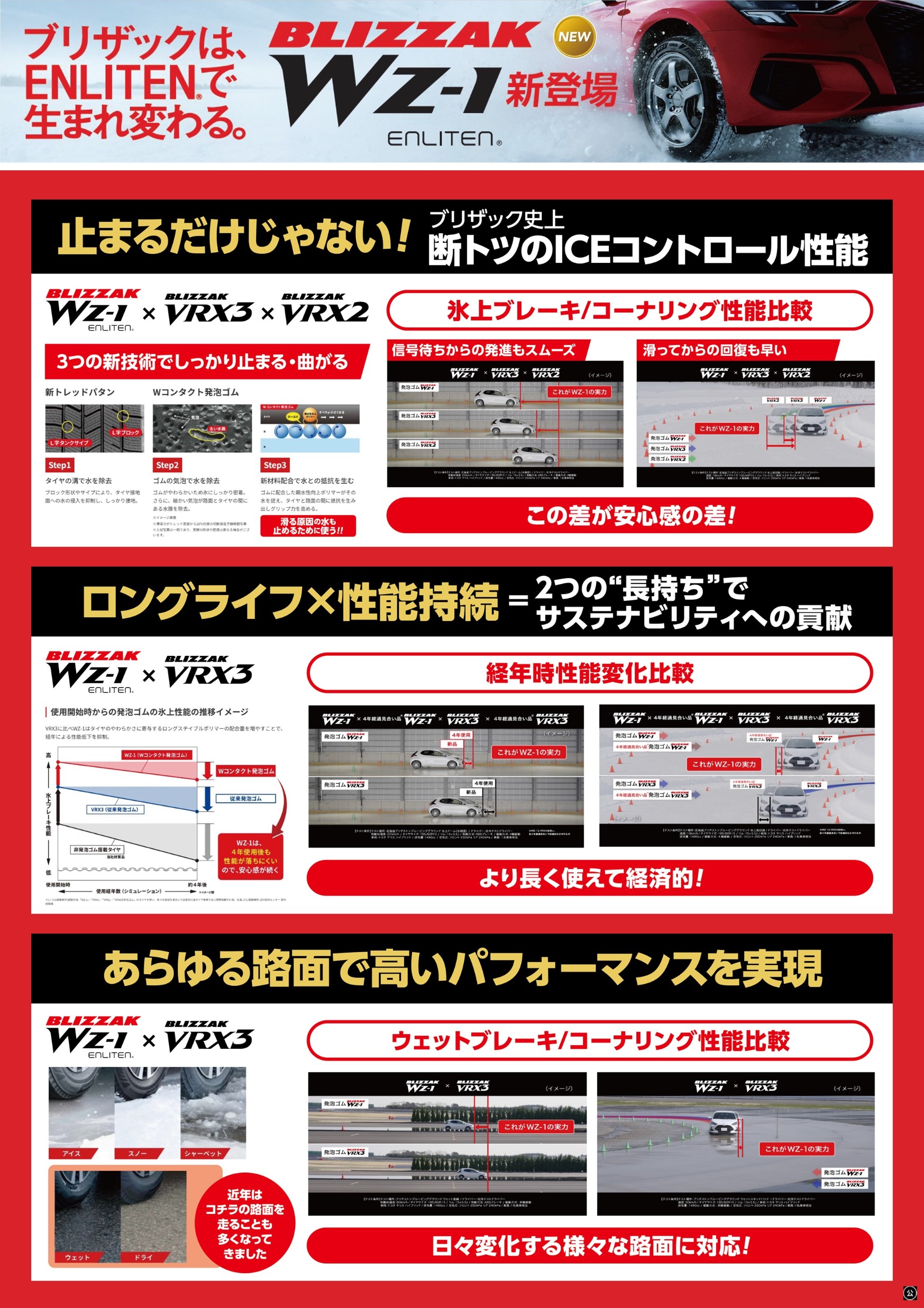 まずは先月9月1日発売開始!ブリヂストン史上最高性能!ブリザック WZ-1