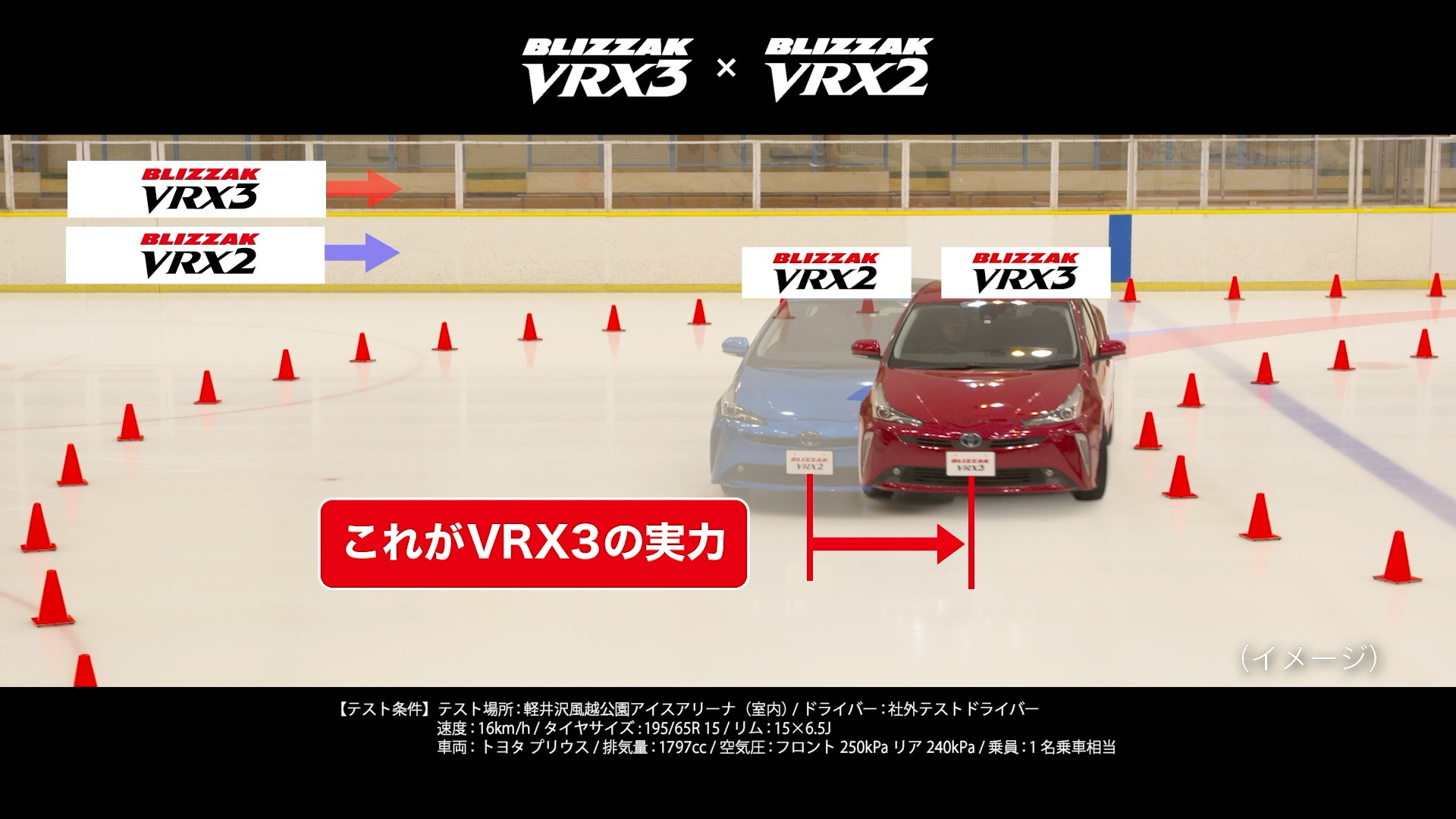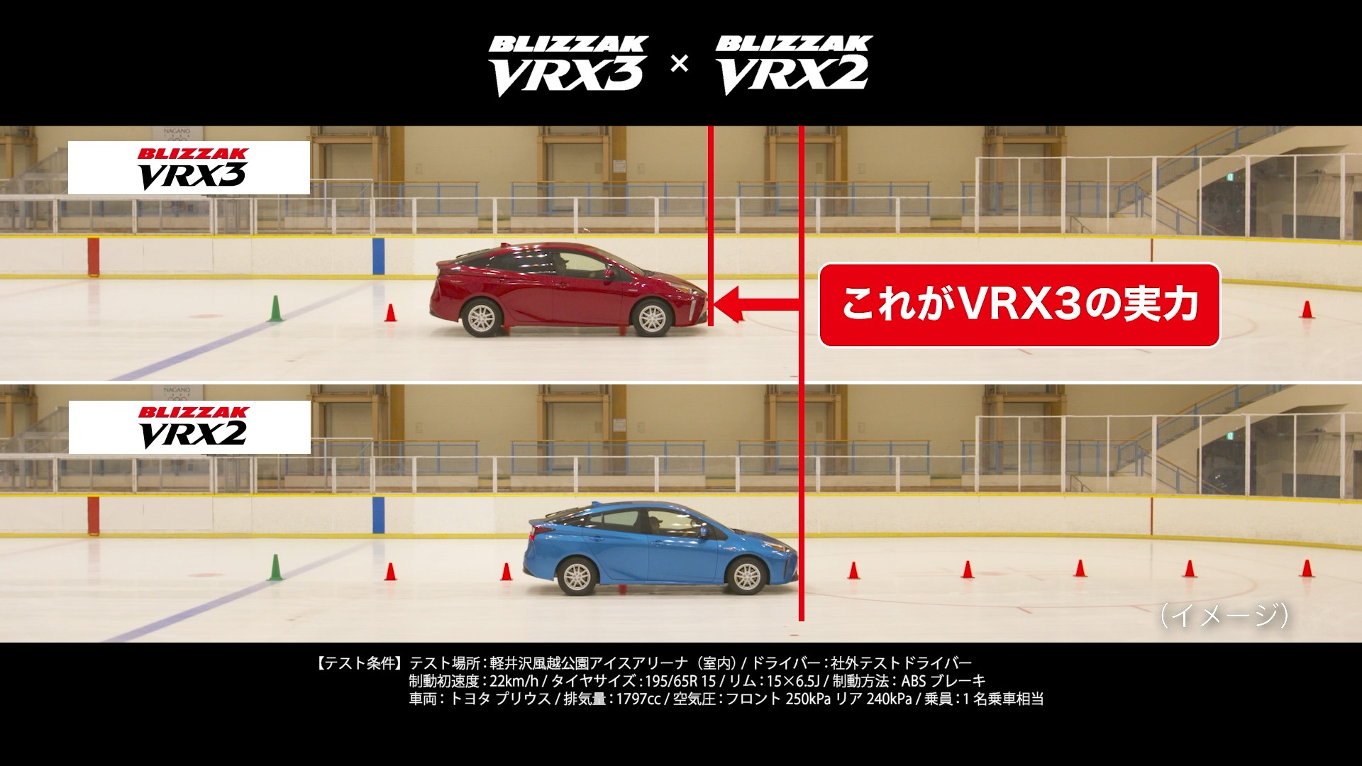 ■従来品VRX3に比べ氷上ブレーキ性能が11%UPしより安心感がさらにUP!
