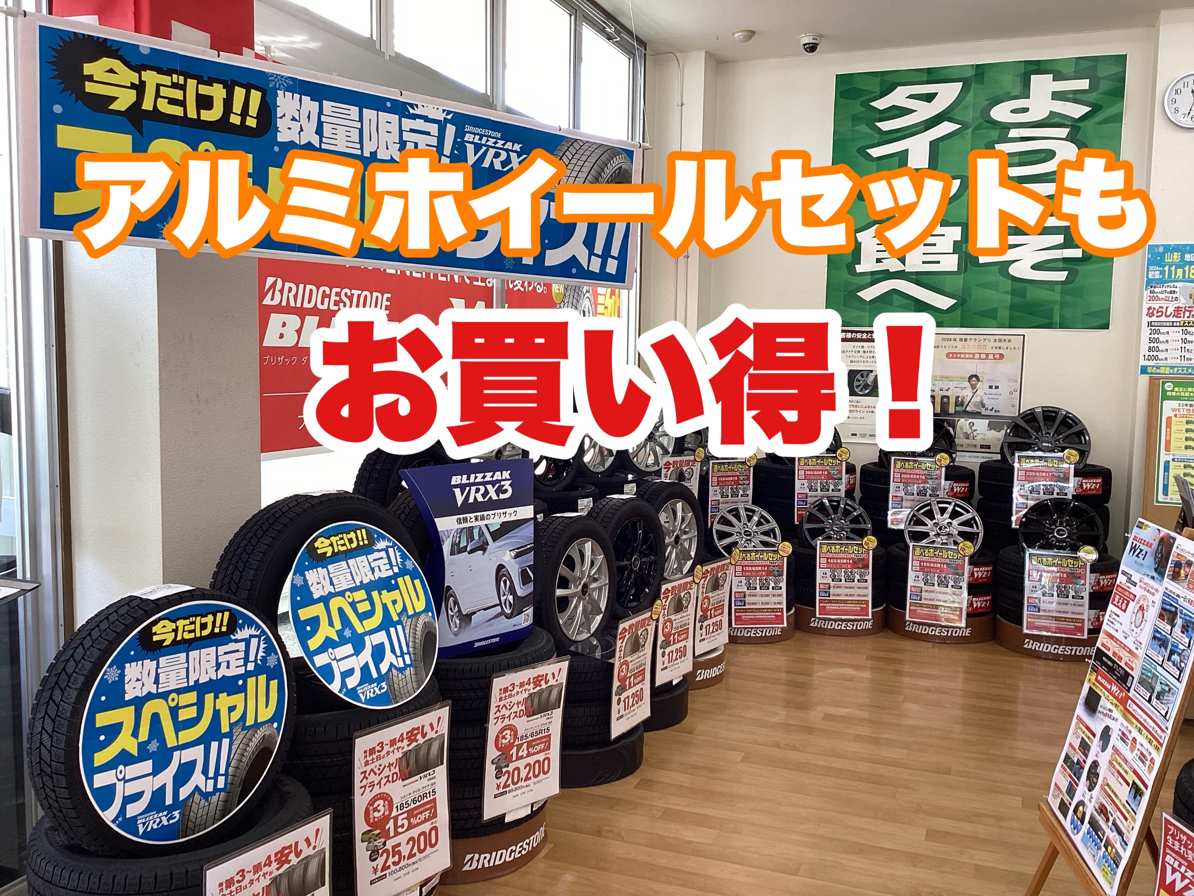 ホイールに関しても、アウトレット商品も含め多数展示しておりますので、