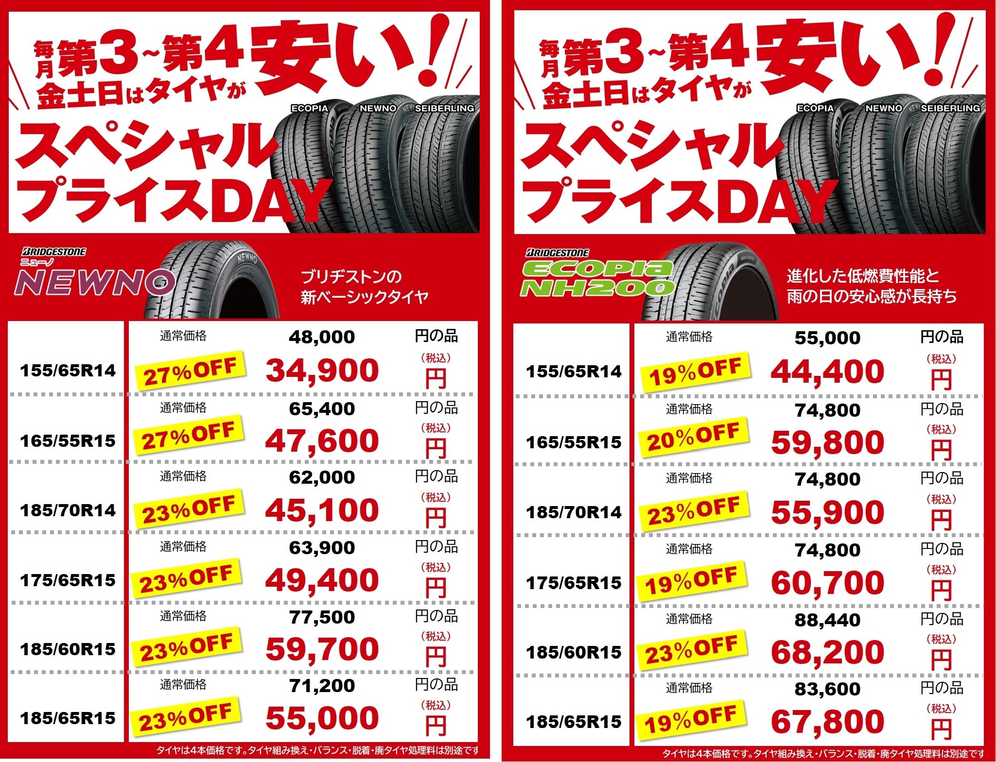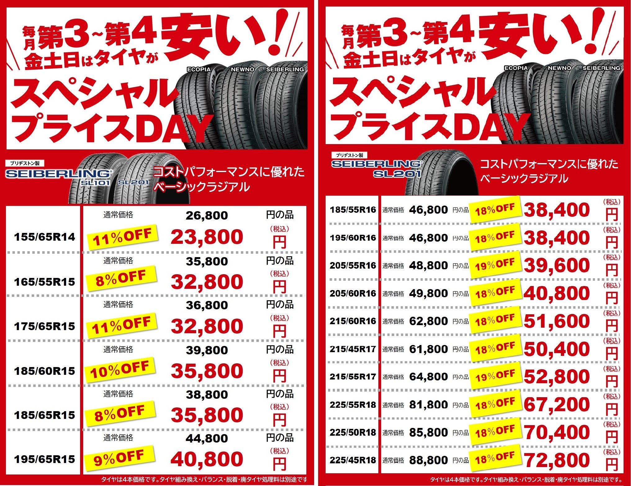 ・10月17日より開催中のタイヤスペシャルプライスDAY
