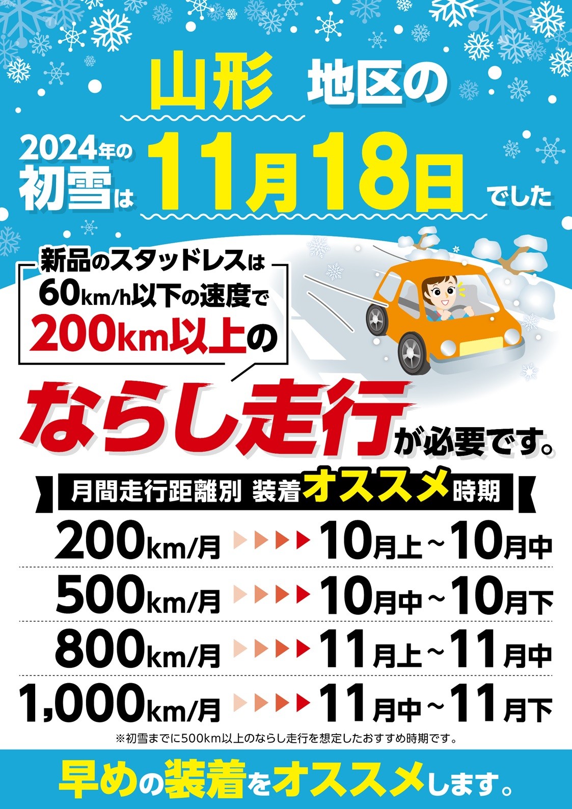 昨年の降雪データ+月間走行距離から算出した当店おススメの装着時期をご紹介します。