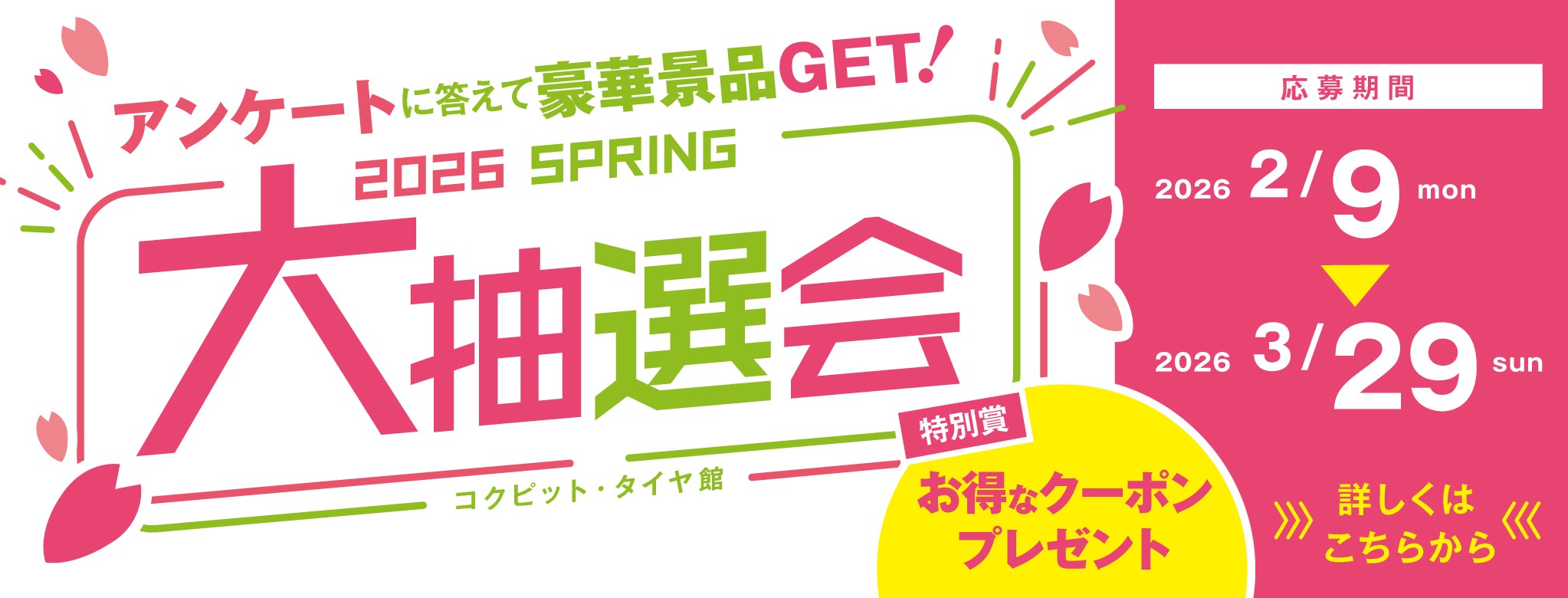 コクピット・タイヤ館では2/9(月)~3/29(日)の期間
