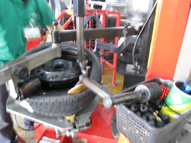 ん~なぜか写真がブレてしまいましたが武田さんがタイヤ交換をしている様子です。
