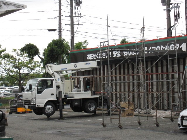 本日はタイヤ展示ガレージの塗装をしていただいているようです。
