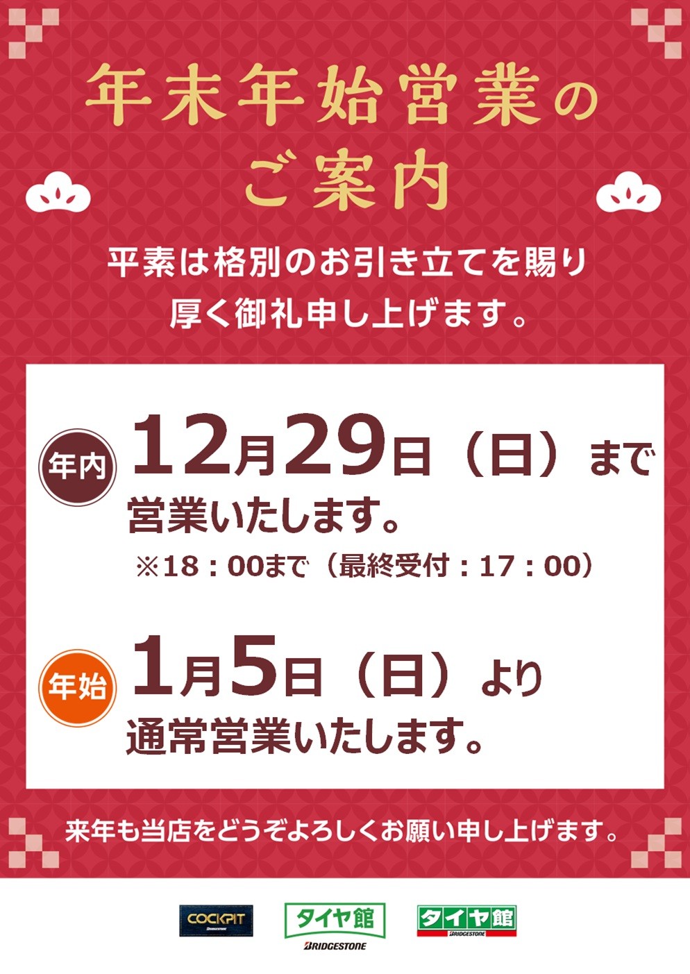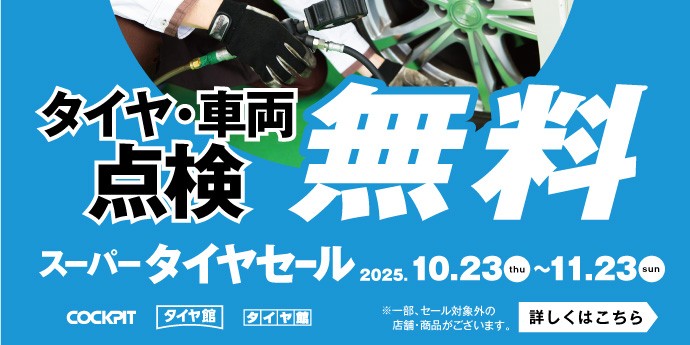 お出かけ前にタイヤ館で愛車無料安全点検を!