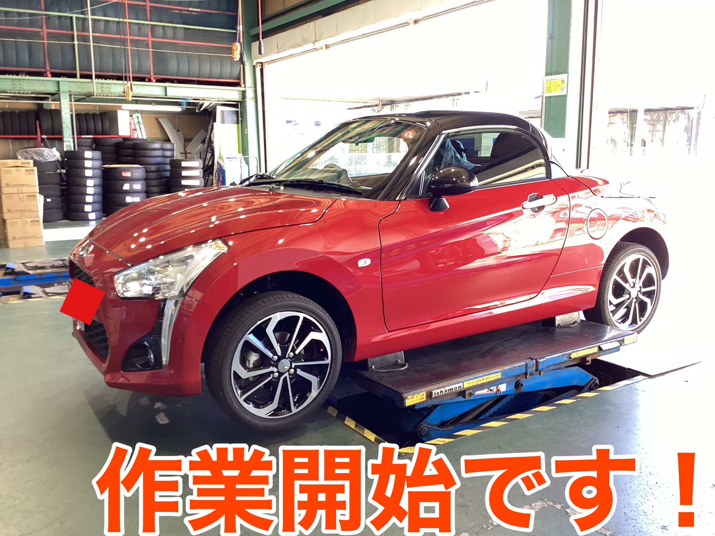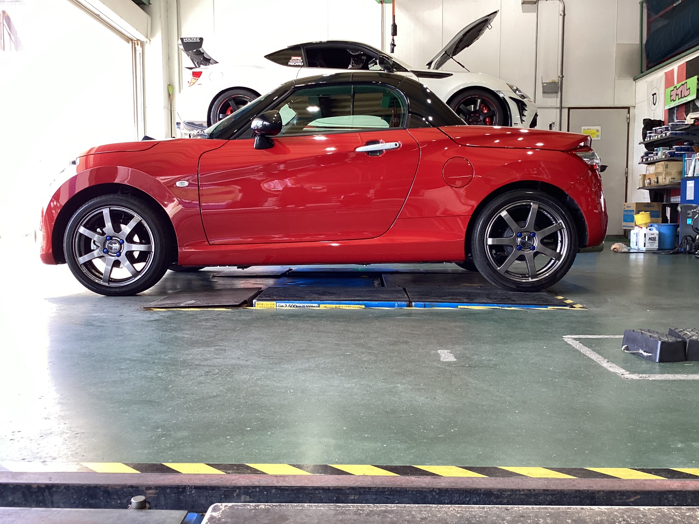 コペンをピットに入れ、作業開始です!