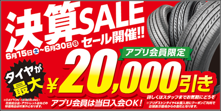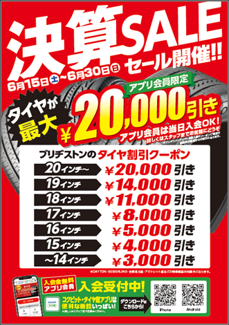 タイヤ館三条では5月20日(月)~6月14日(金)までの期間