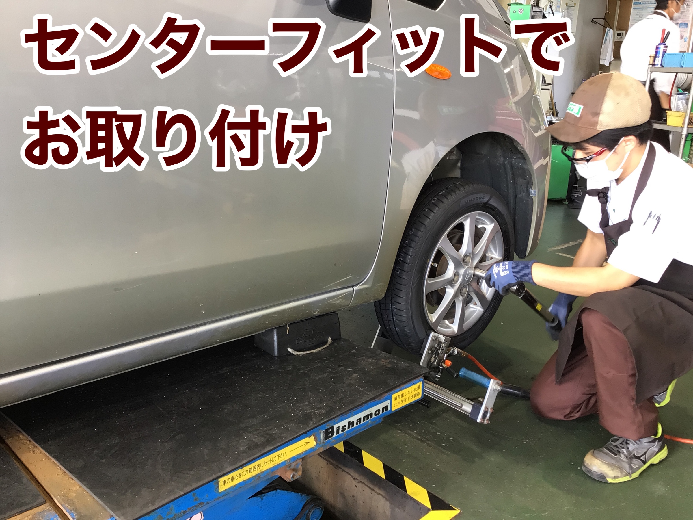タイヤ館こだわりの作業 センターフィットでお取り付けです。