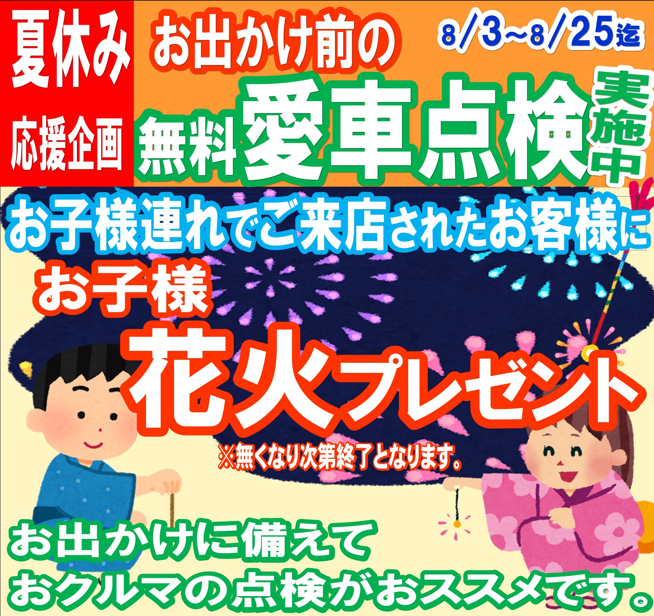 愛車無料点検で花火をGET!