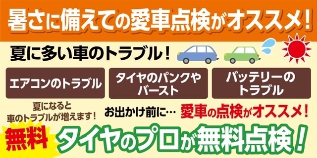 お出かけ前の愛車無料点検実施中!
