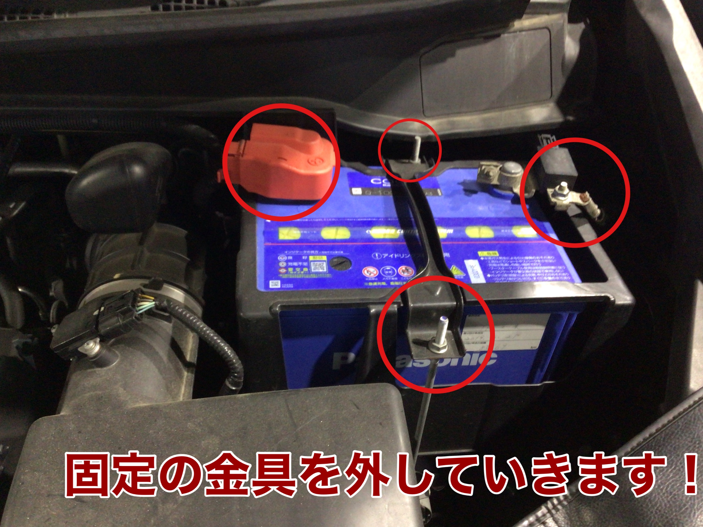 バッテリーを固定しているステーを外して、