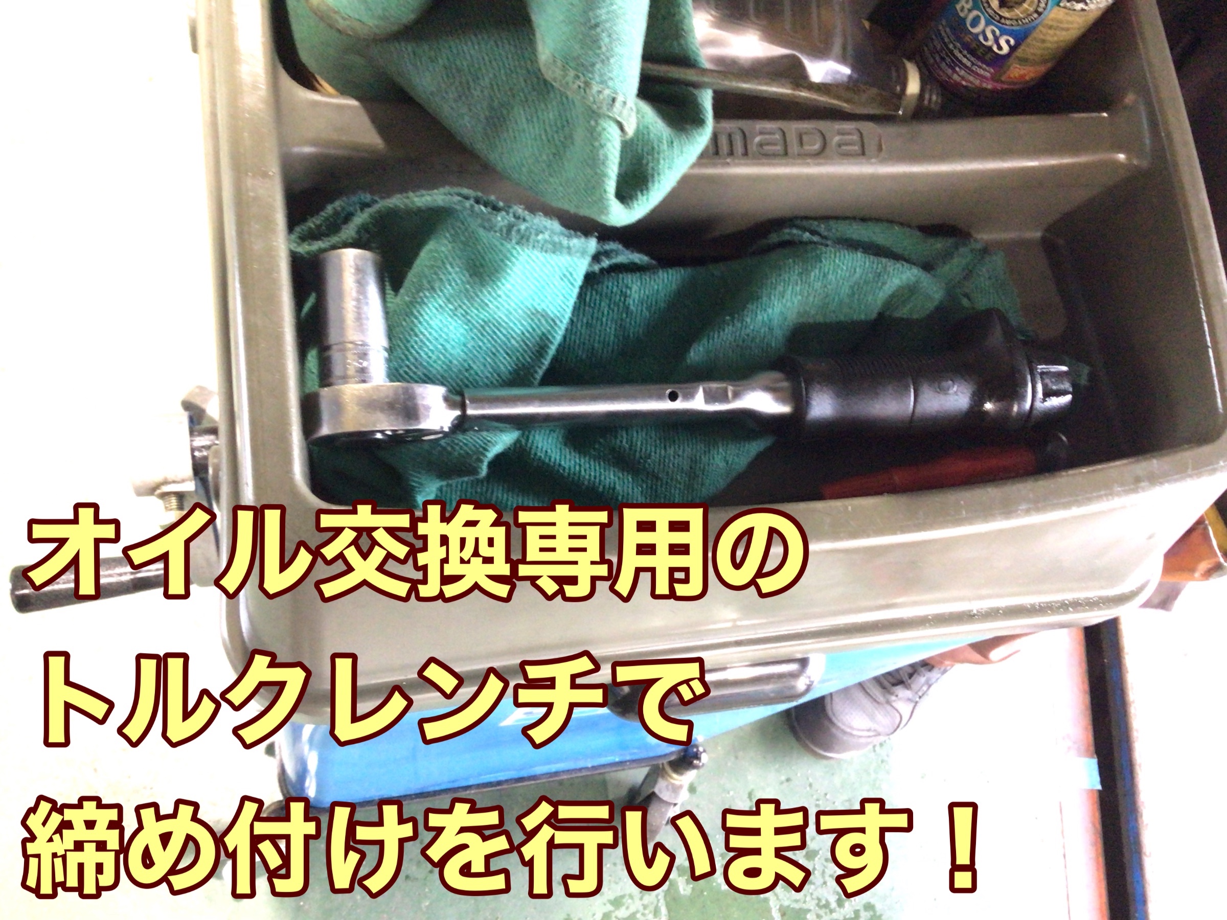 オイルドレンのボルトを適正トルクで締め付けたら、