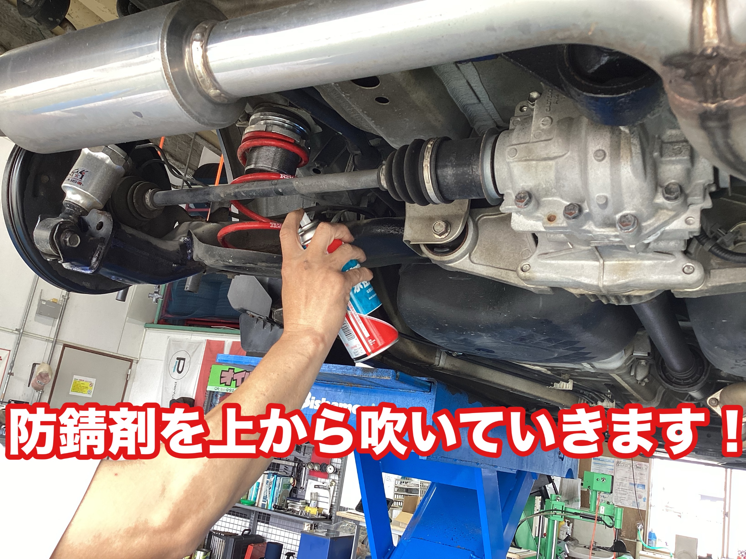 上から防錆剤を吹いていきます!
