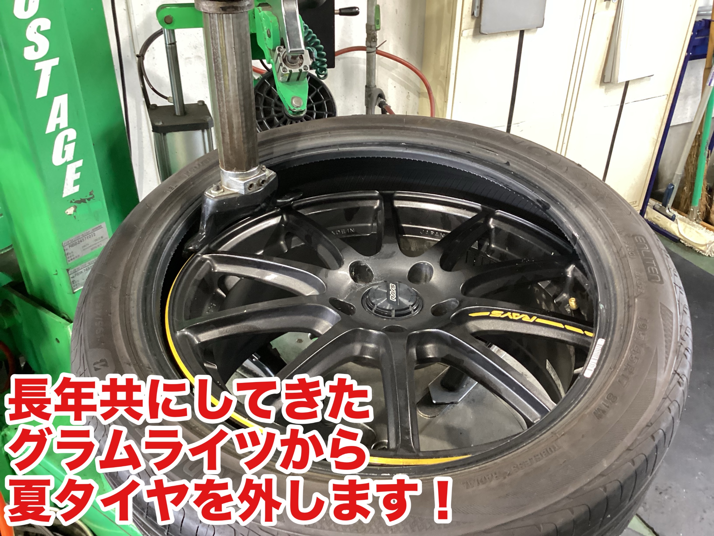 まずは夏タイヤをバラします!