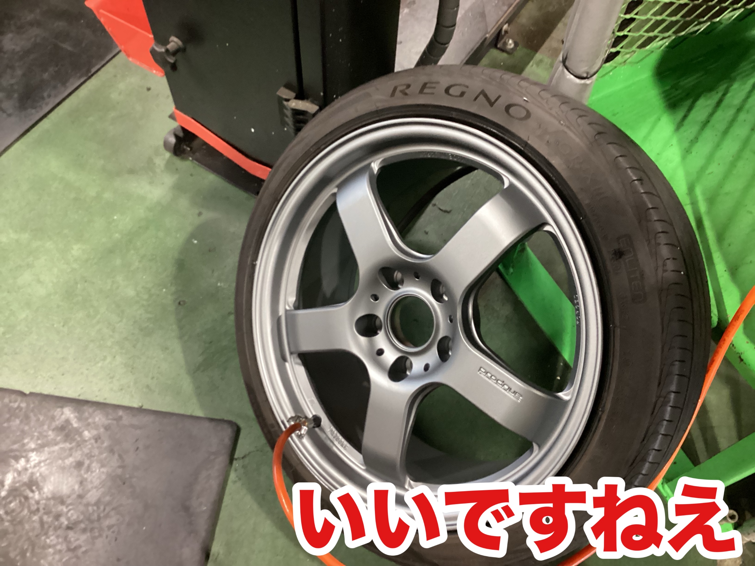 黄色いラインのホイールなんて滅多にないので、