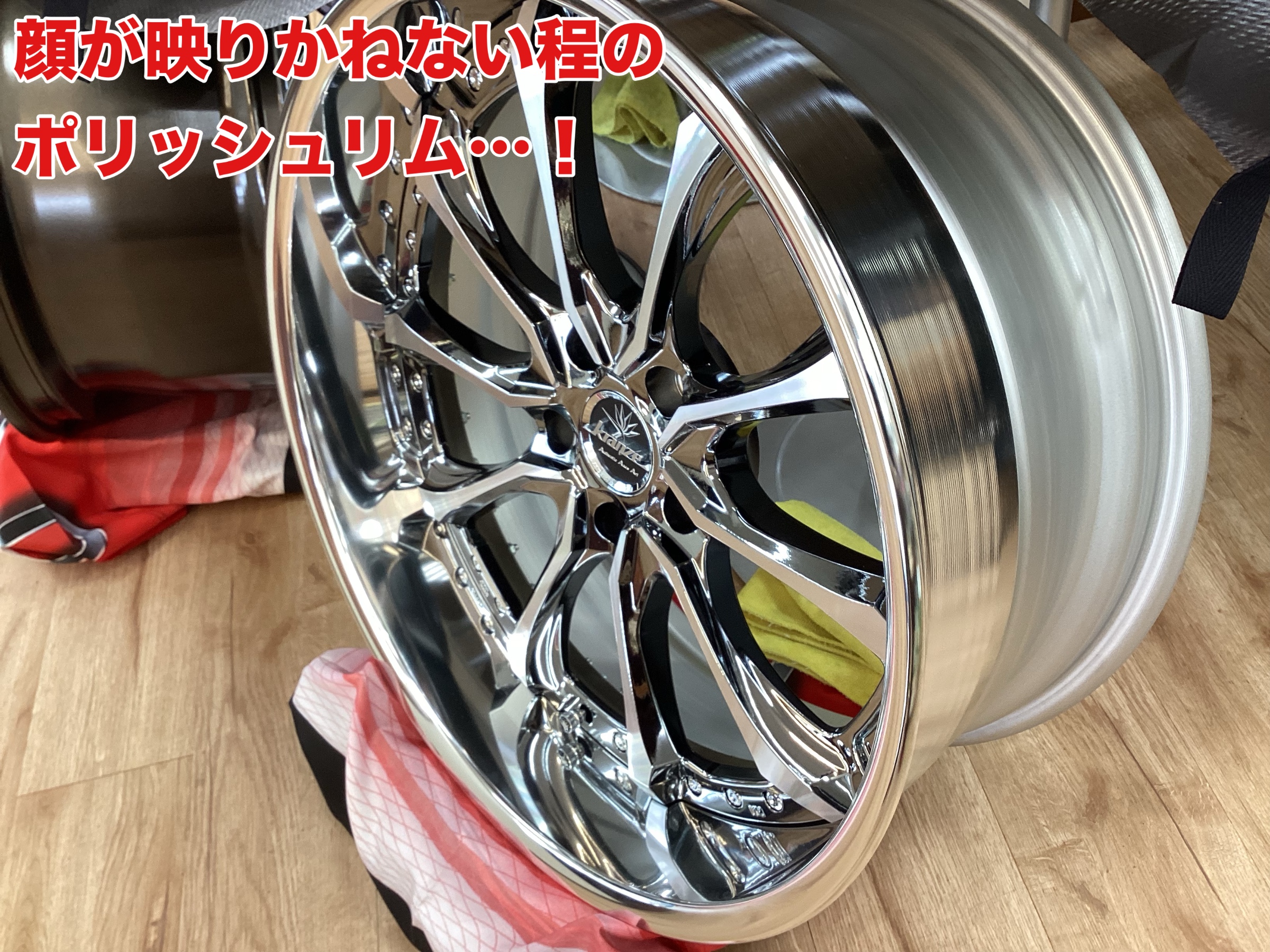 思わんばかりの鏡面仕上げのポリッシュリムが