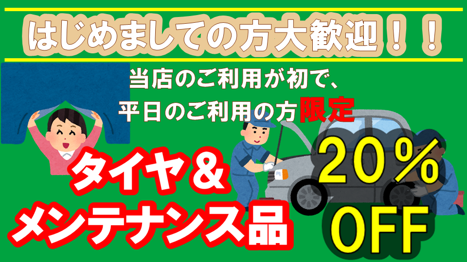 タイヤ、メンテナンス品が20%オフ!