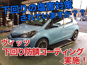 皆さまこんにちは! 昨日の仕事上がりに、 新しく出来たイオンそよらに行ってきました! 新しいお店が出来るとワクワクしてしまいますね! 人も凄いし一人で来てもあれなので、 とりあえず一通りみて帰りました さて、今回ご紹介の作業は、 ヴィッツの下回り防錆コーティングです。 新潟に住む以上...