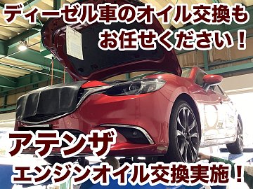 ディーゼル車のオイル交換もお任せください!【マツダ アテンザ エンジンオイル交換】