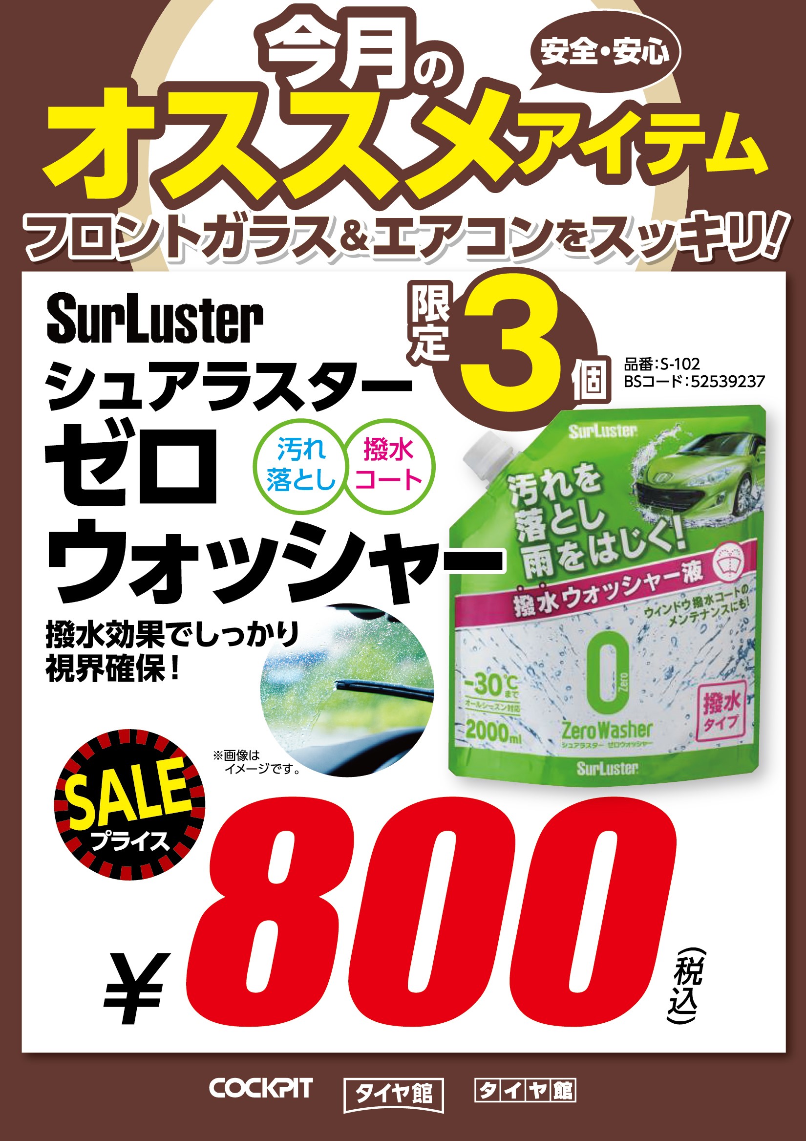 ②シュアラスターゼロウォッシャー撥水ウォッシャー液