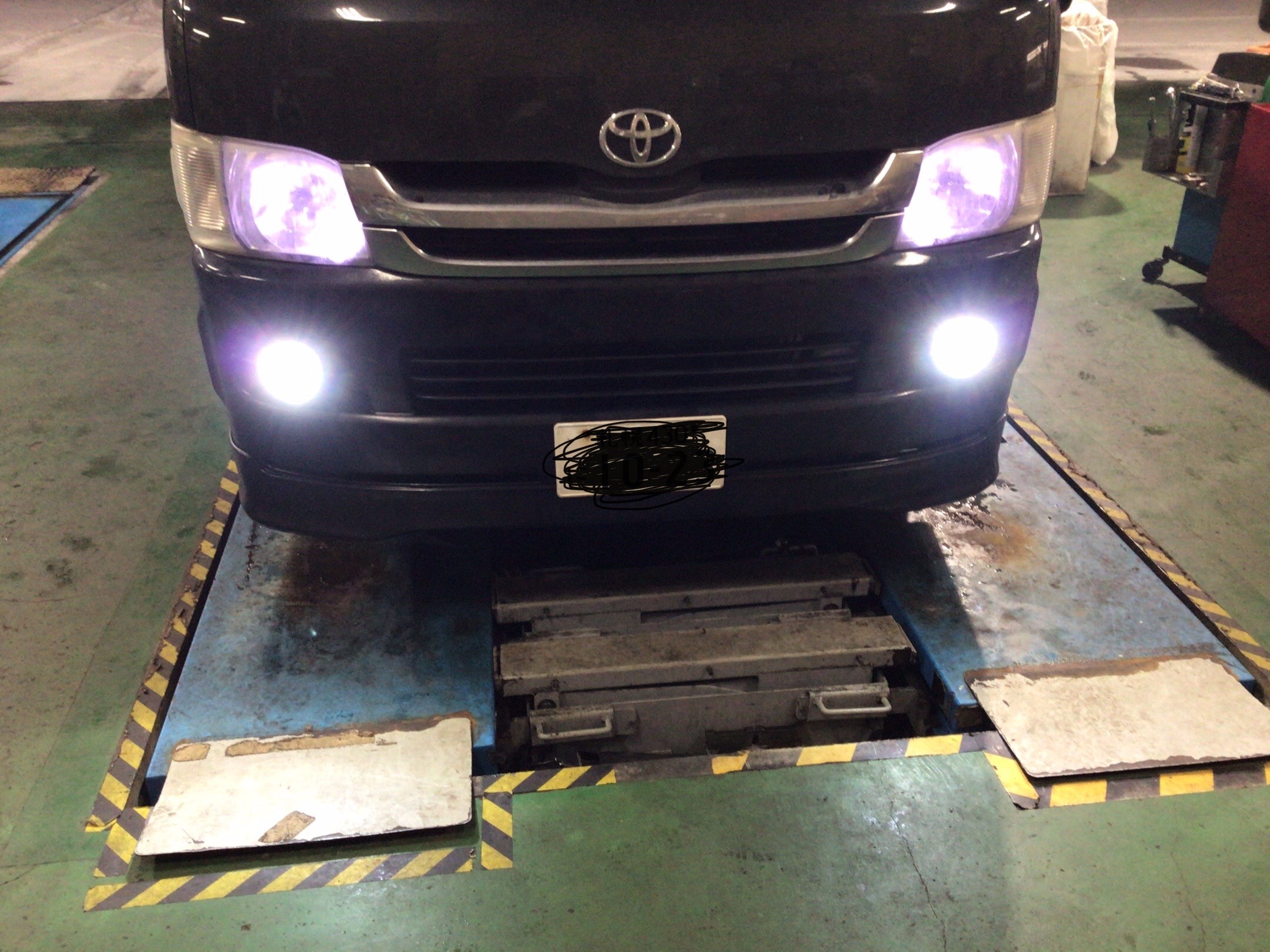 本日は200系ハイエースにフォグランプ HID取付 スフィアライト HB4 35W 6000K