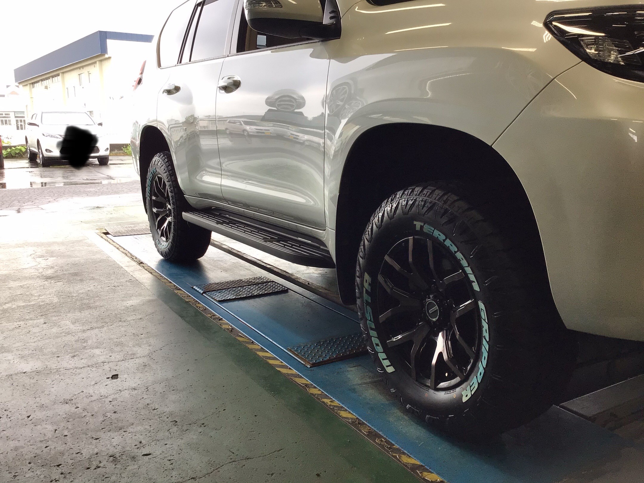 本日はランドクルーザープラドにイージーアップスペーサー取付です。