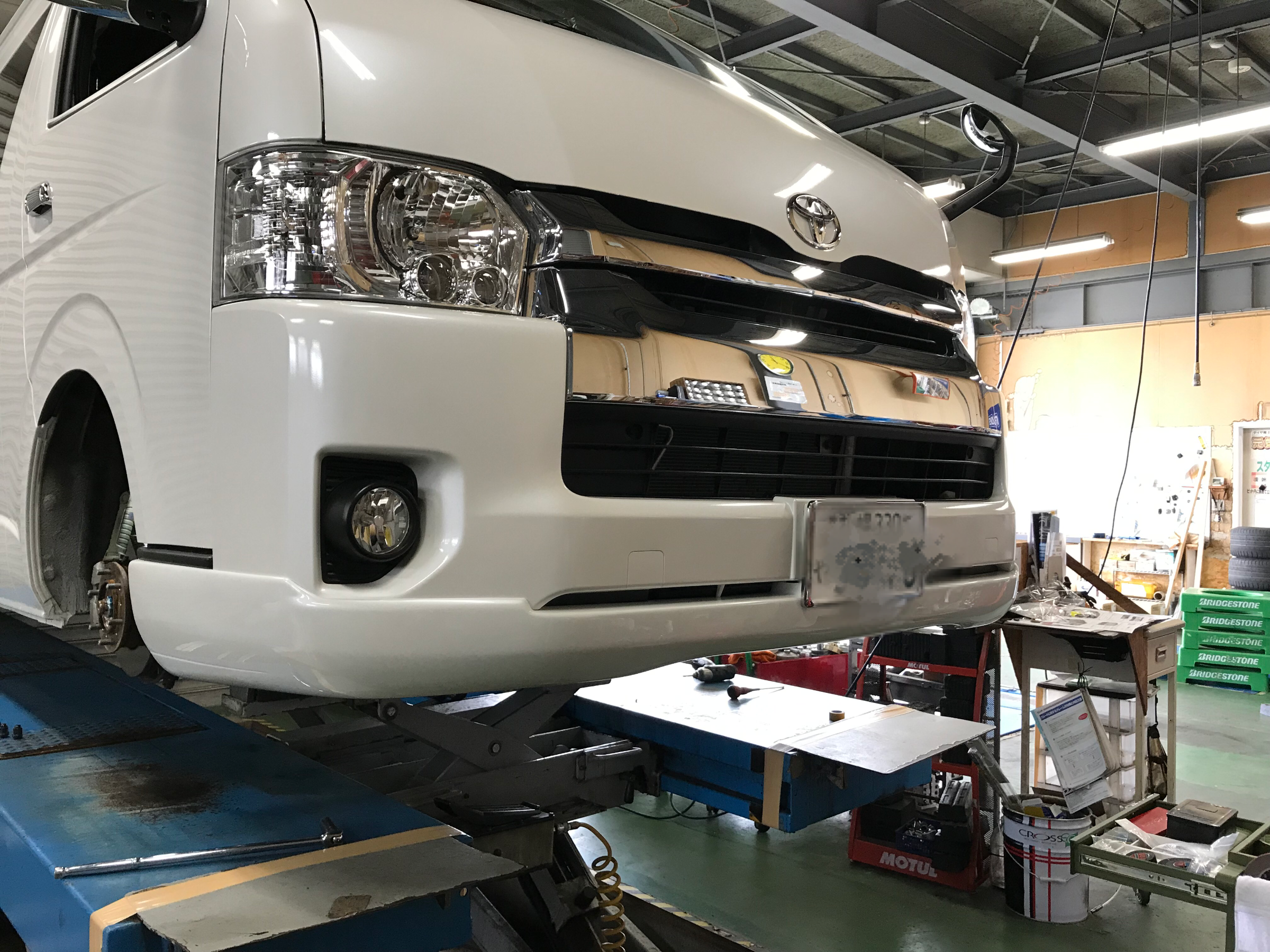 ハイエース 5型 スーパーロング ハイルーフ xギブソン ヴァージョン1 エアロ取り付け