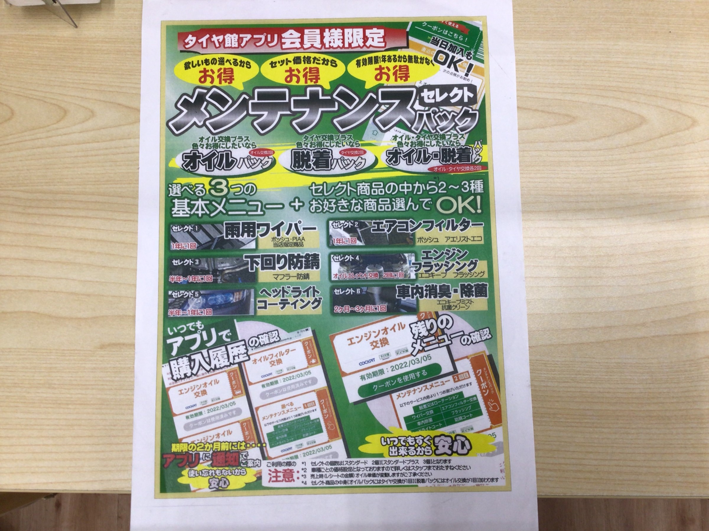 タイヤ館アプリ会員様限定のパックになりますが、これがかなりお得です!!