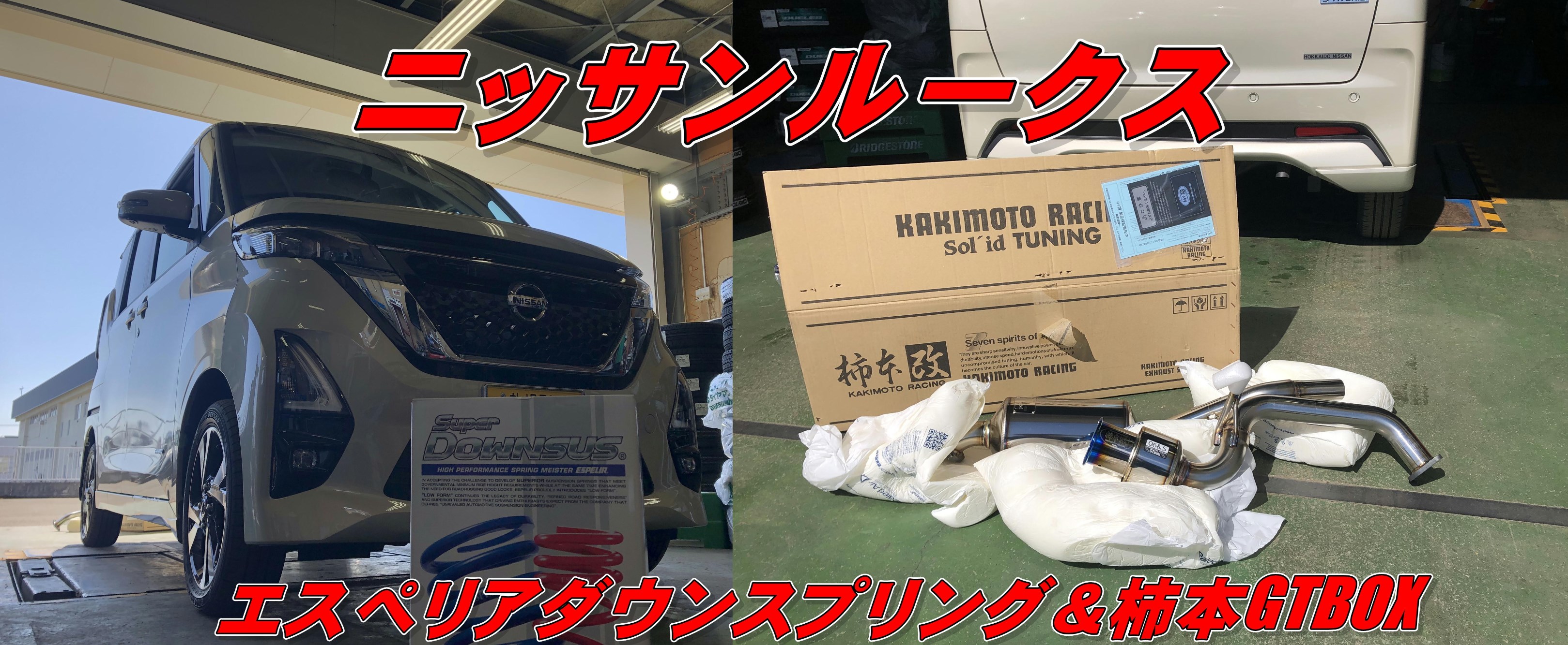 本日は新型ルークスにエスペリアダウンサスと柿本マフラーGT-BOXの取付をご紹介いたします。