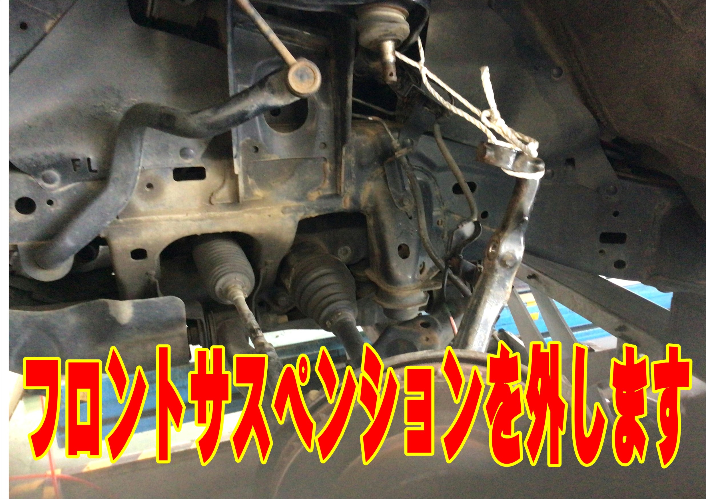 写真が少し飛びますがタイヤを外してフロントのサスペンションを外します!!
