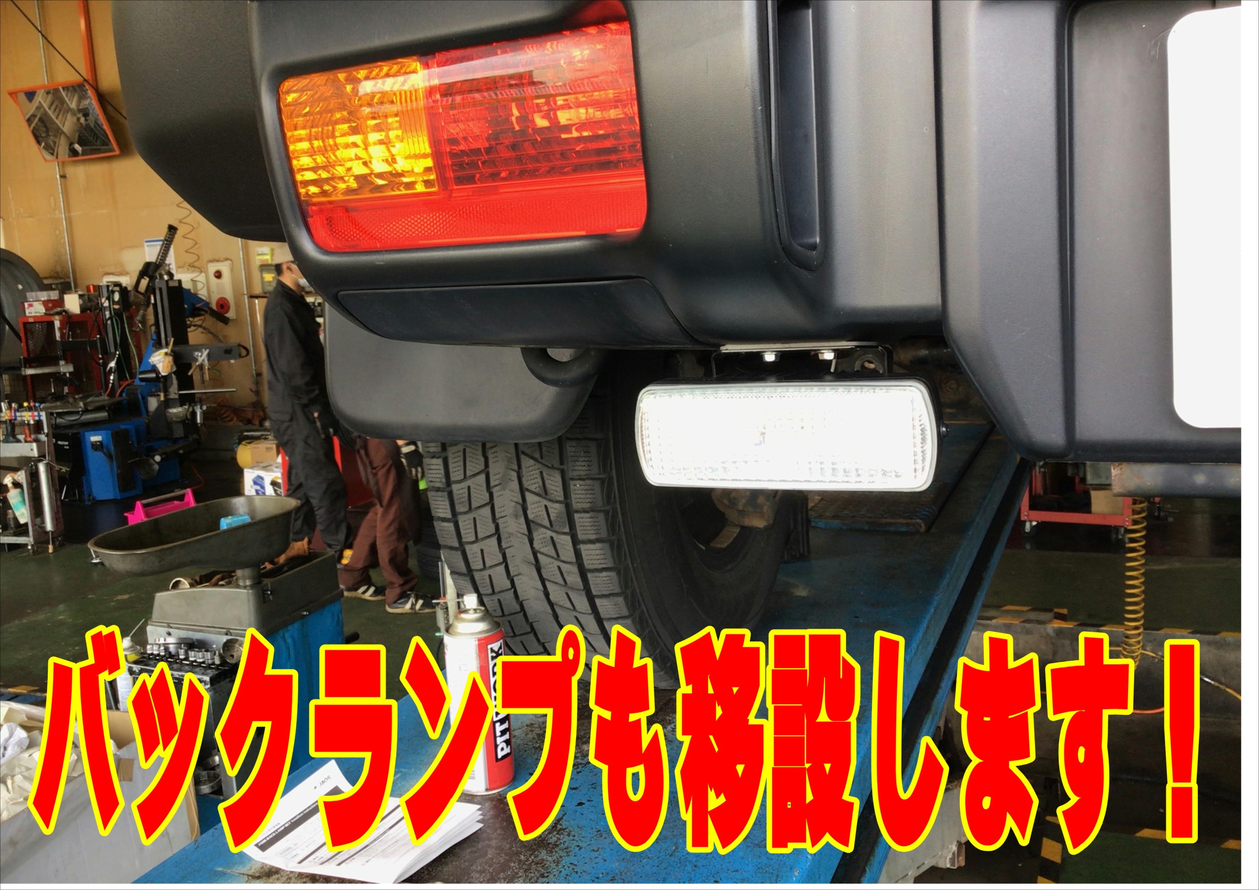 ここで注意なのが、FJクルーザーはリフトアップした際にバックランプを下の方に移設しなければ車検が通りません・・・