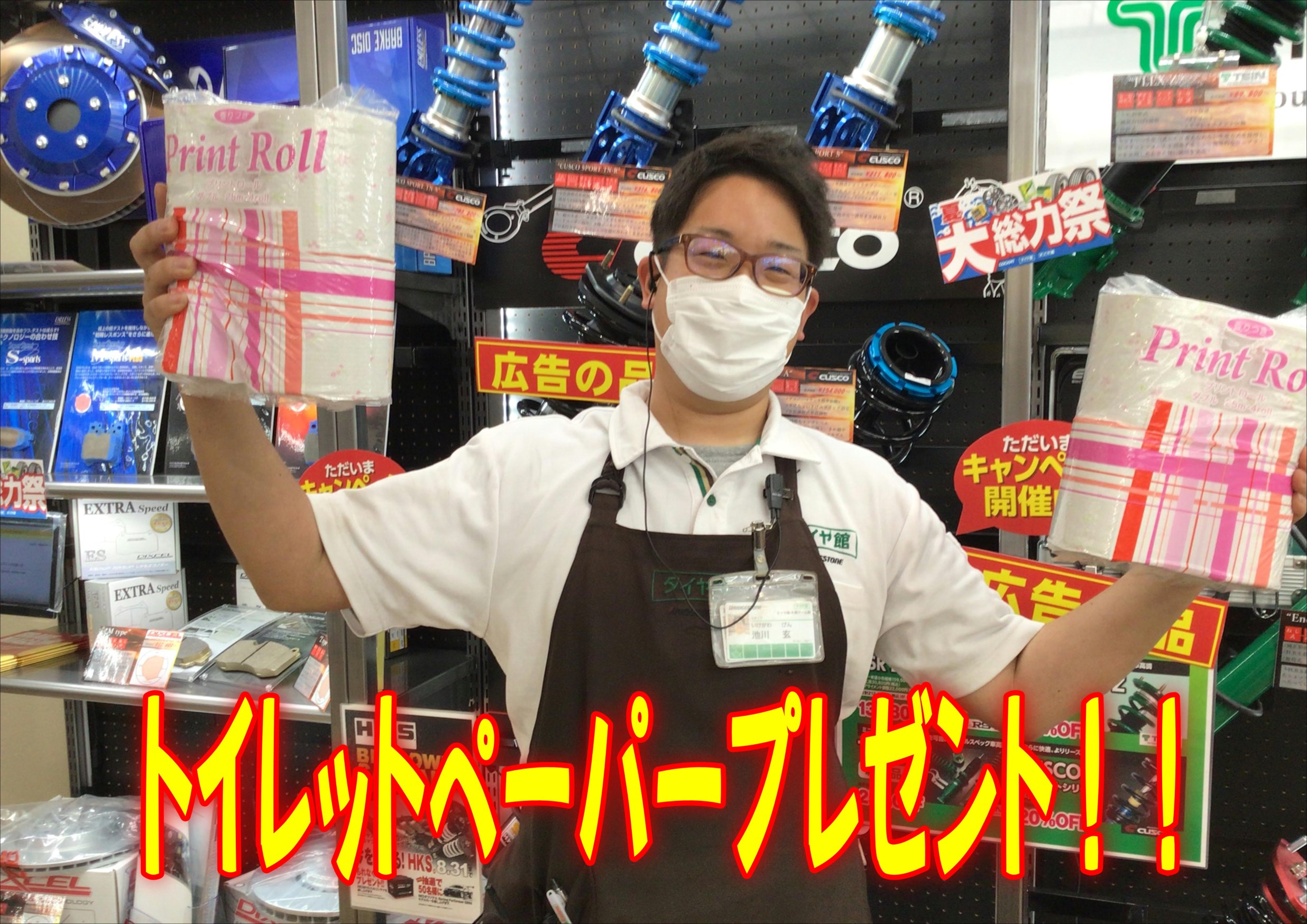 7/31までエンジンオイル交換のお客様にトイレットペーパープレゼントキャンペーン!!
