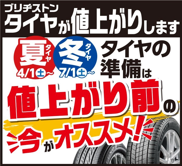 ブリヂストンのタイヤが値上がりします。