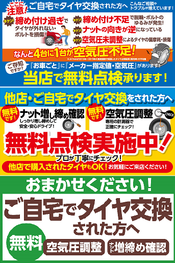 ご自宅でタイヤ交換をされた方へご案内です☆