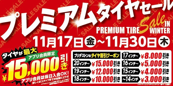 11/17(金)より、プレミアムタイヤセール開催します!!