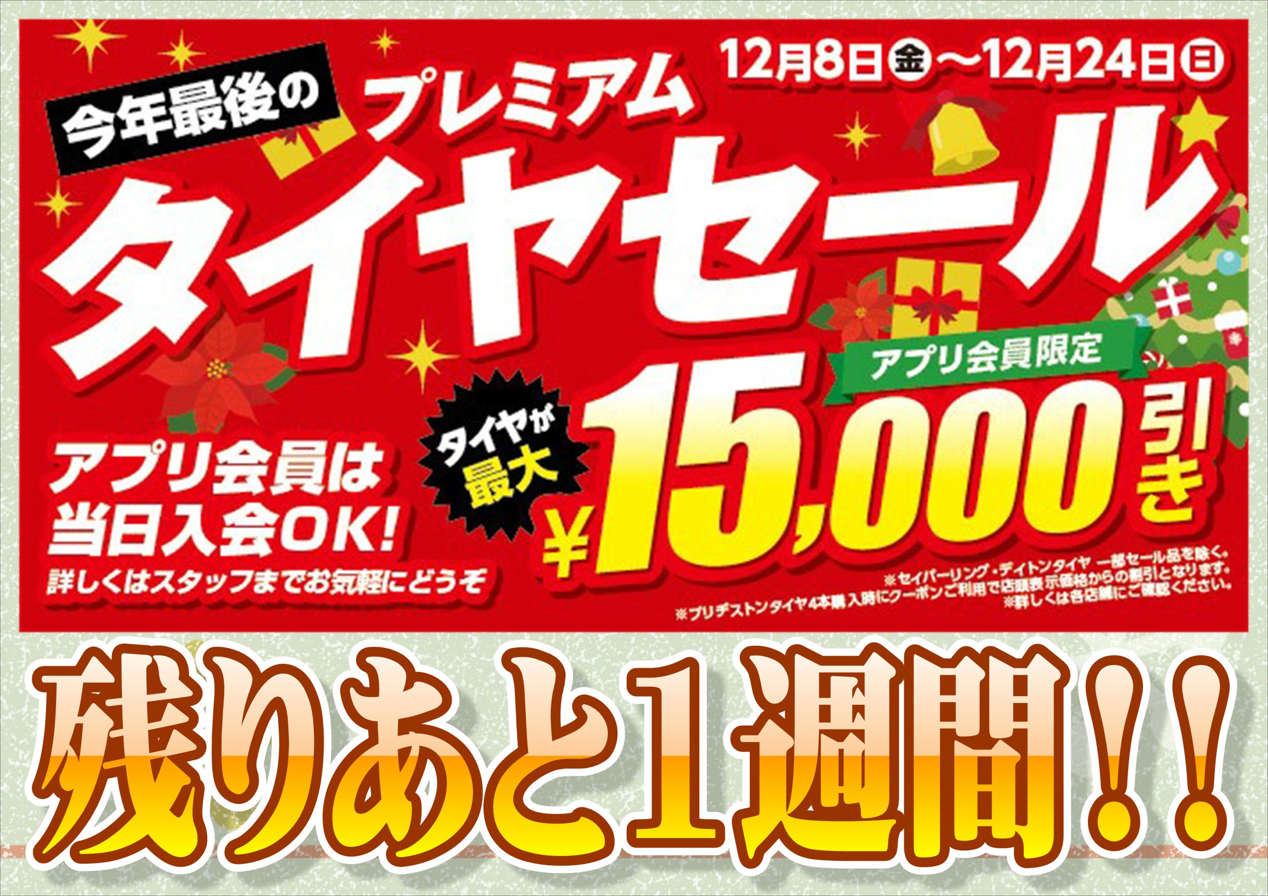 プレミアムタイヤセール、残りあと1週間となりました!!