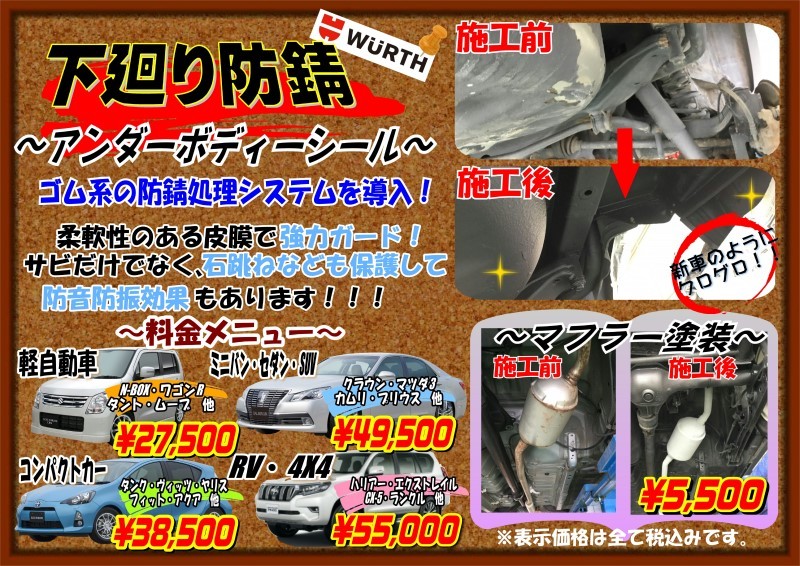 下廻り防錆コーティングをされていない方、