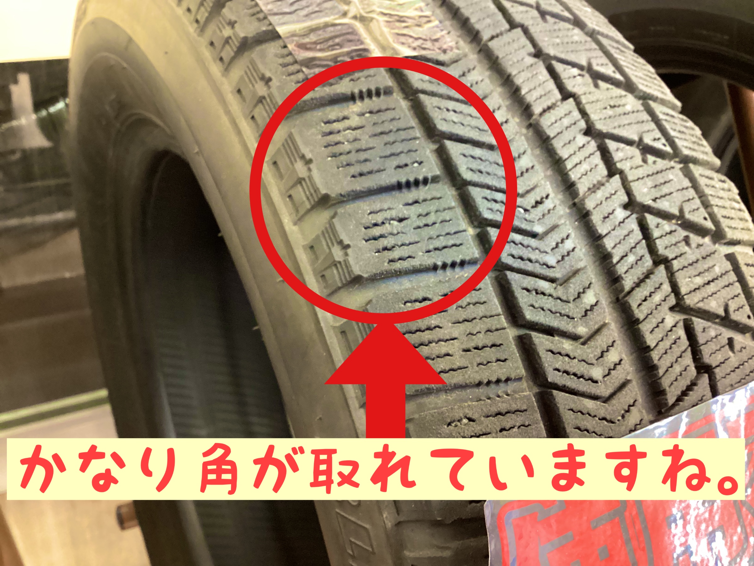 タイヤの角の状態を写してます。