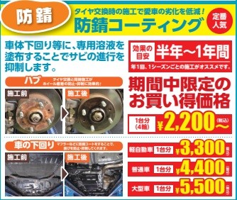 冬のメンテナンスフェアに防錆コーティングも入ってます!!
