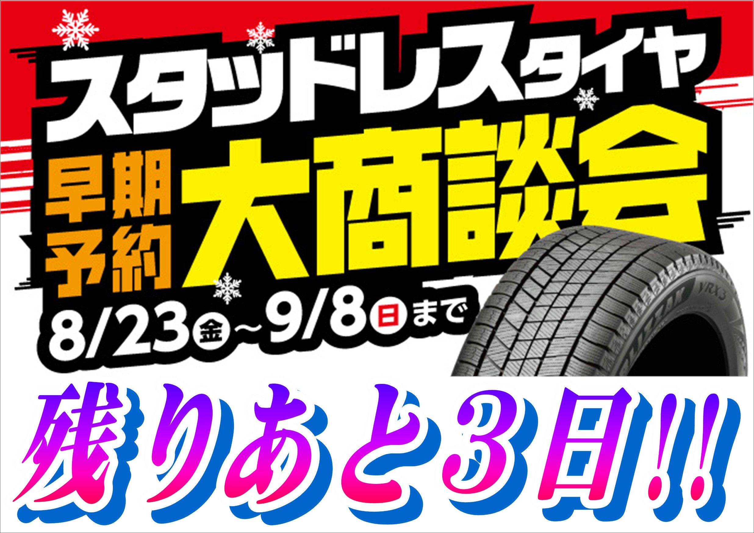 スタッドレスタイヤ大商談会、残りあと3日!!