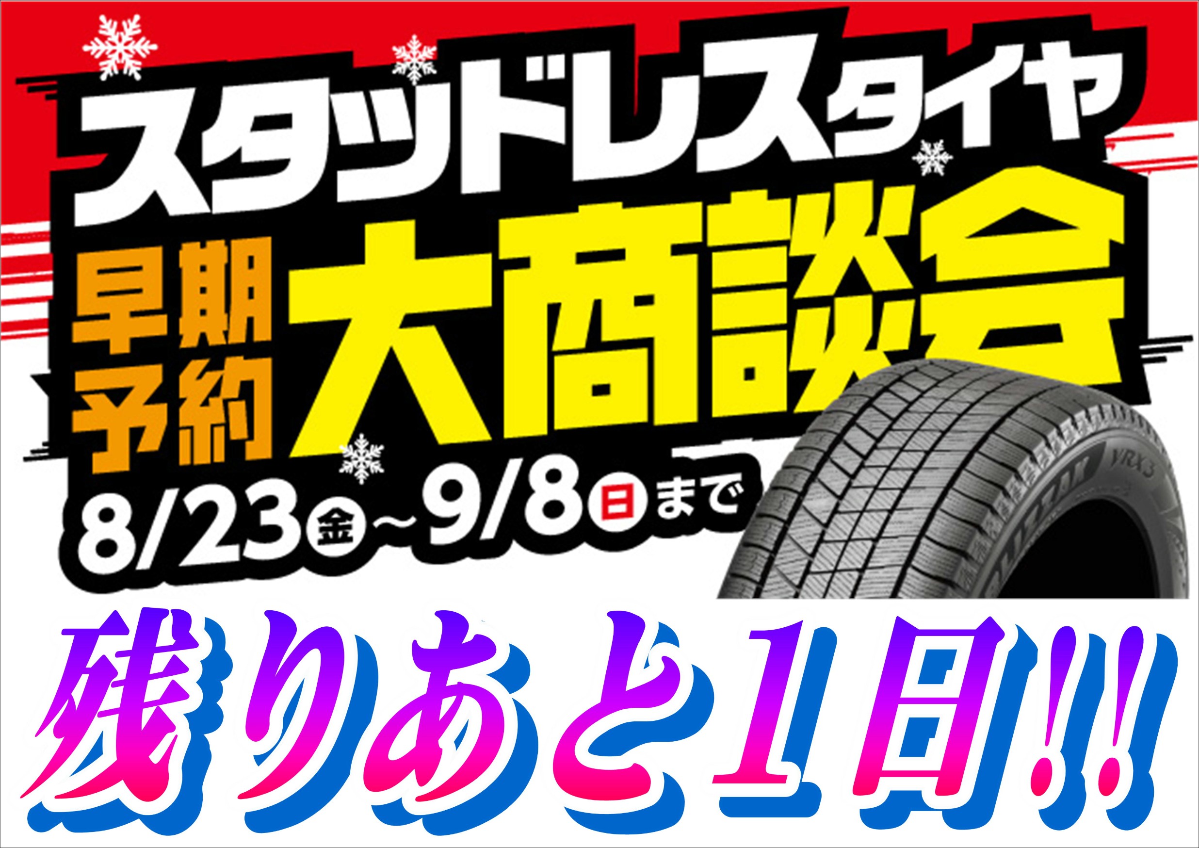 スタッドレスタイヤ大商談会、残りあと1日!!