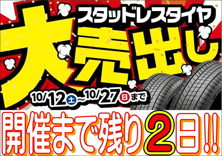 スタッドレスタイヤ大売出しセール開催まで残りあと2日!!