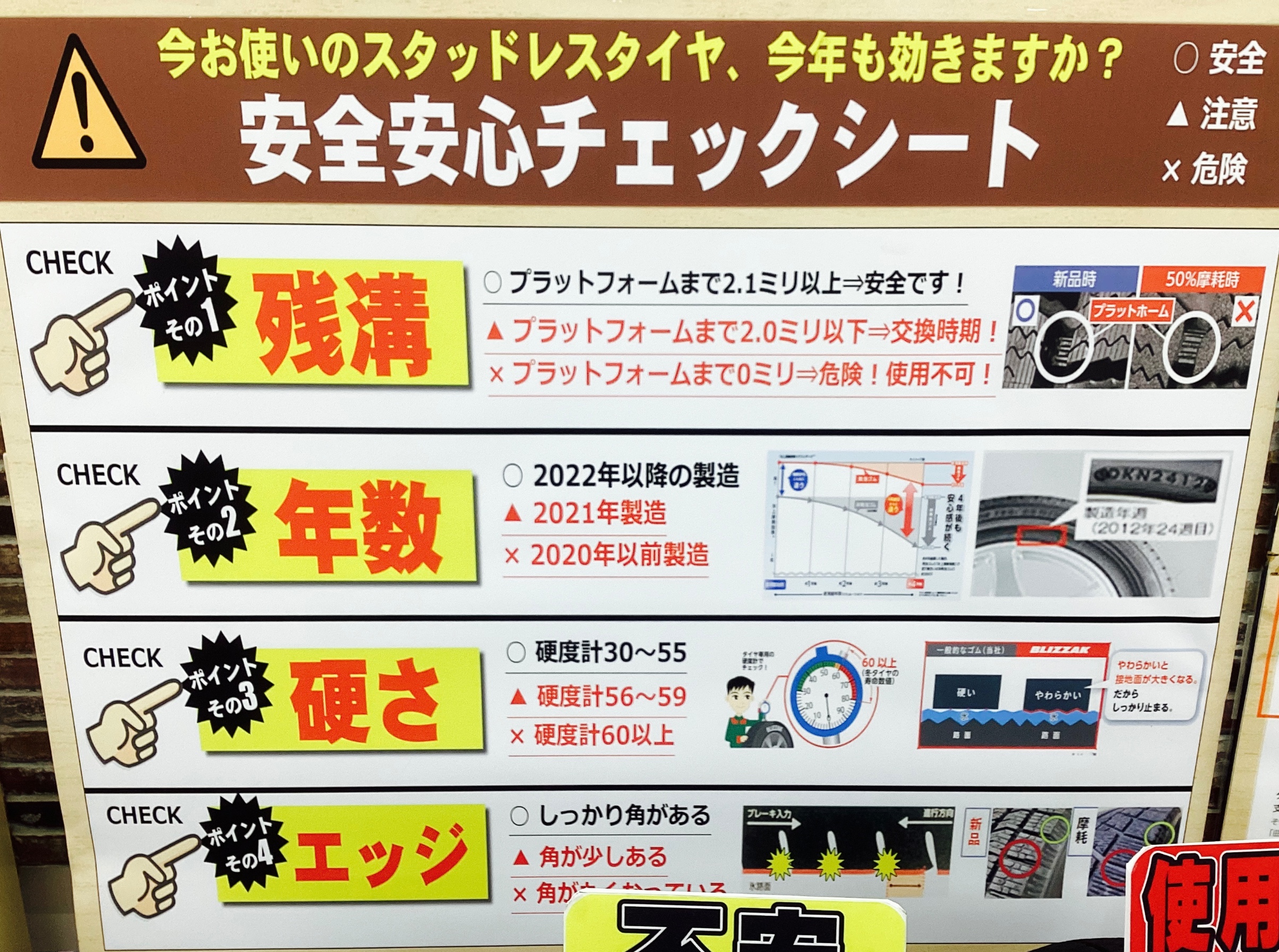 1⃣使用限度のサインまで溝がどのくらい残っているか
