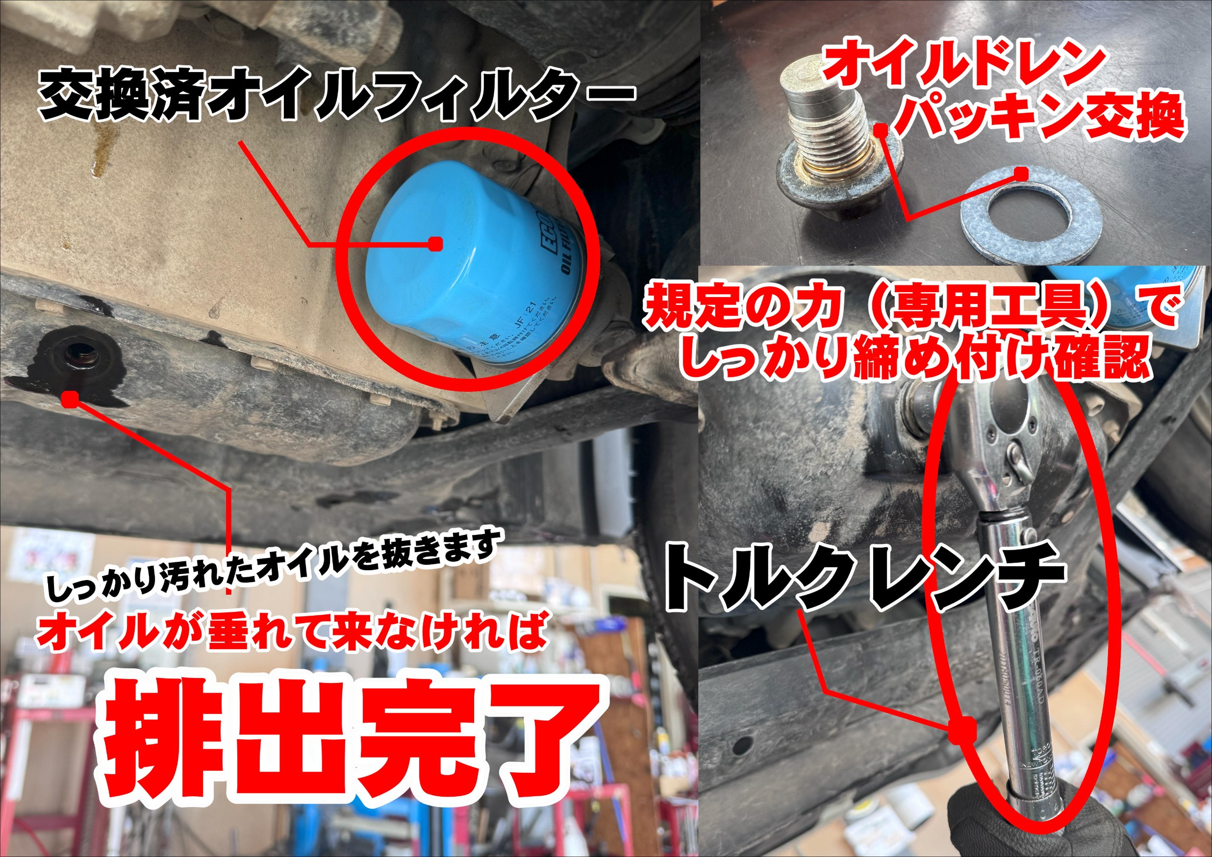 オイルドレンを締める際は締めすぎ、緩みがない様、専用工具で