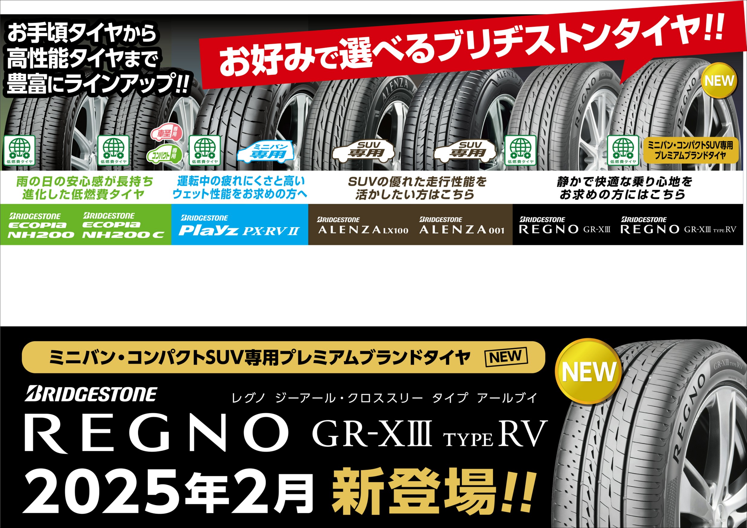 ECOPIAからREGNO、SUV専用タイヤのALENZA