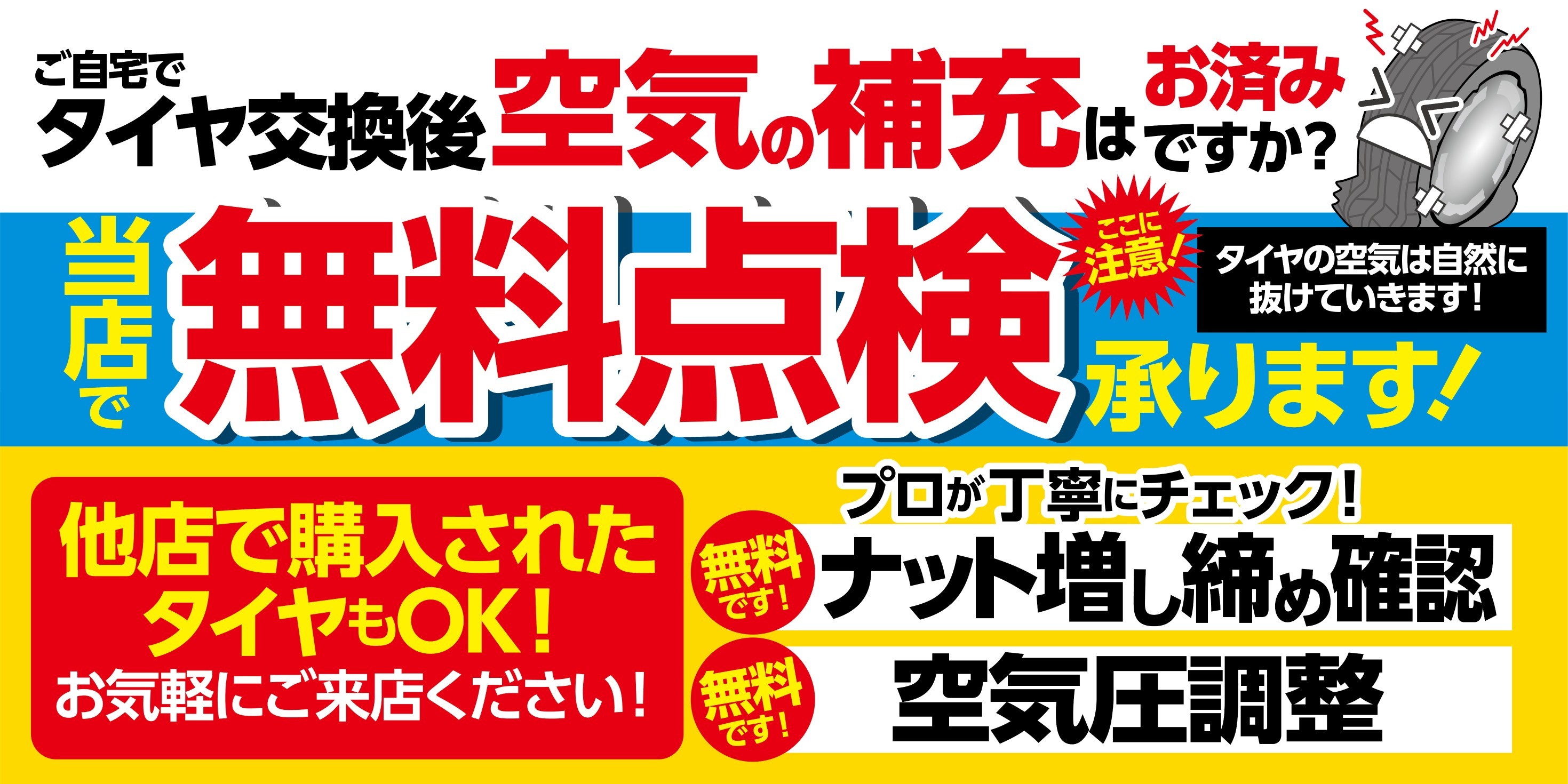 タイヤ点検・タイヤ空気圧充填