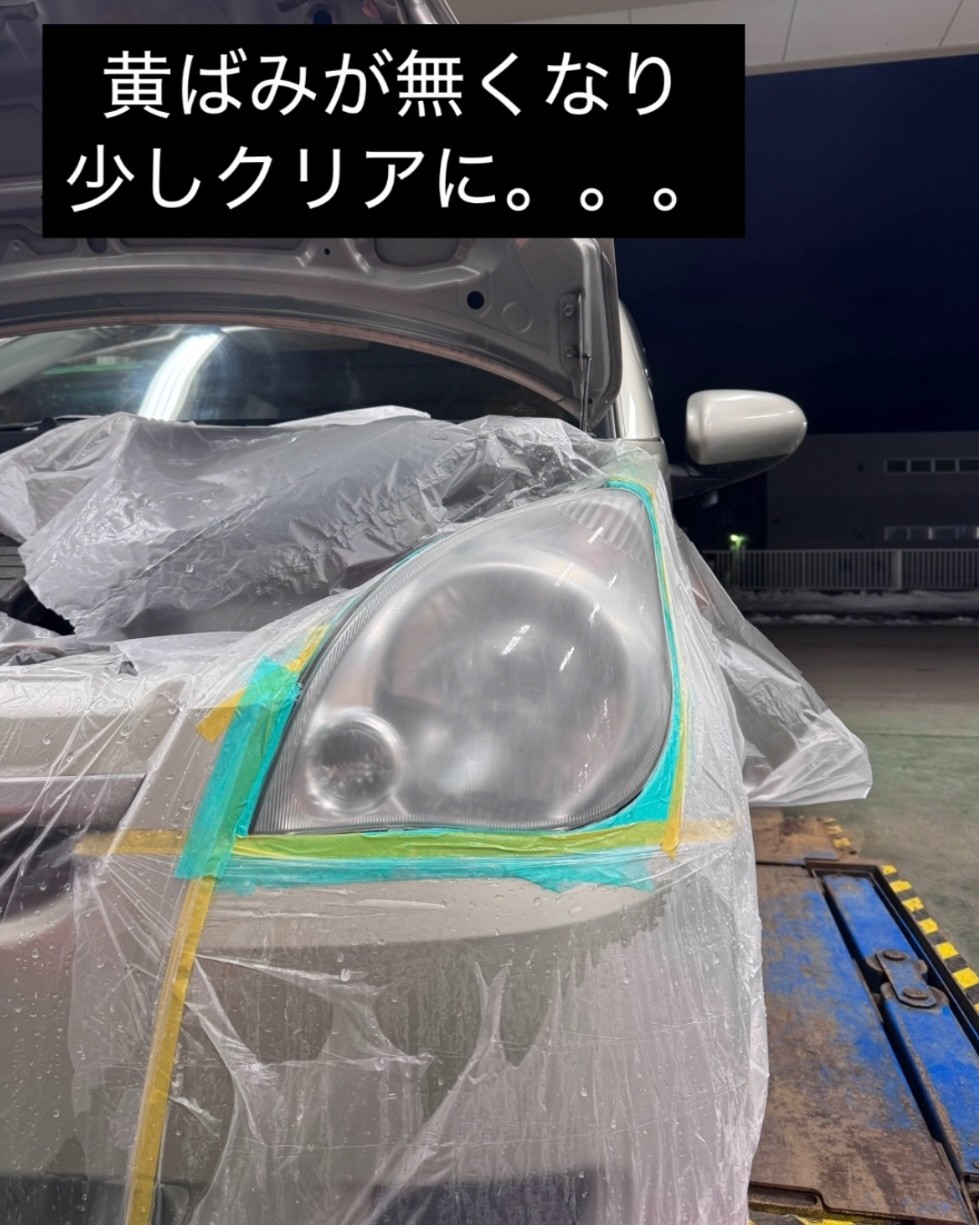 ヘッドライト研磨+スチーマーコーティングは、表面のコートを剥離し、