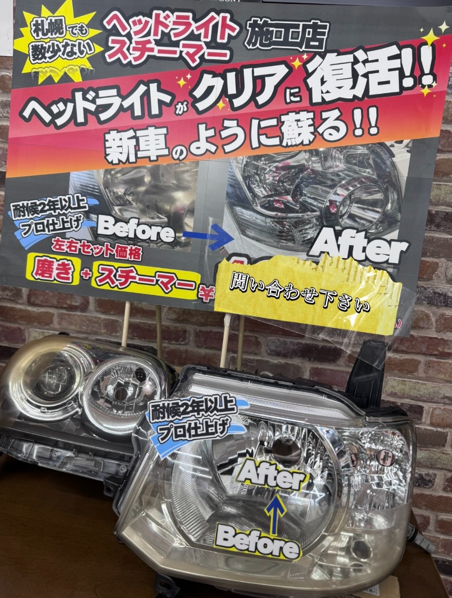 札幌ドーム前で人気の『ヘッドライトスチームコーティング』のご案内です!