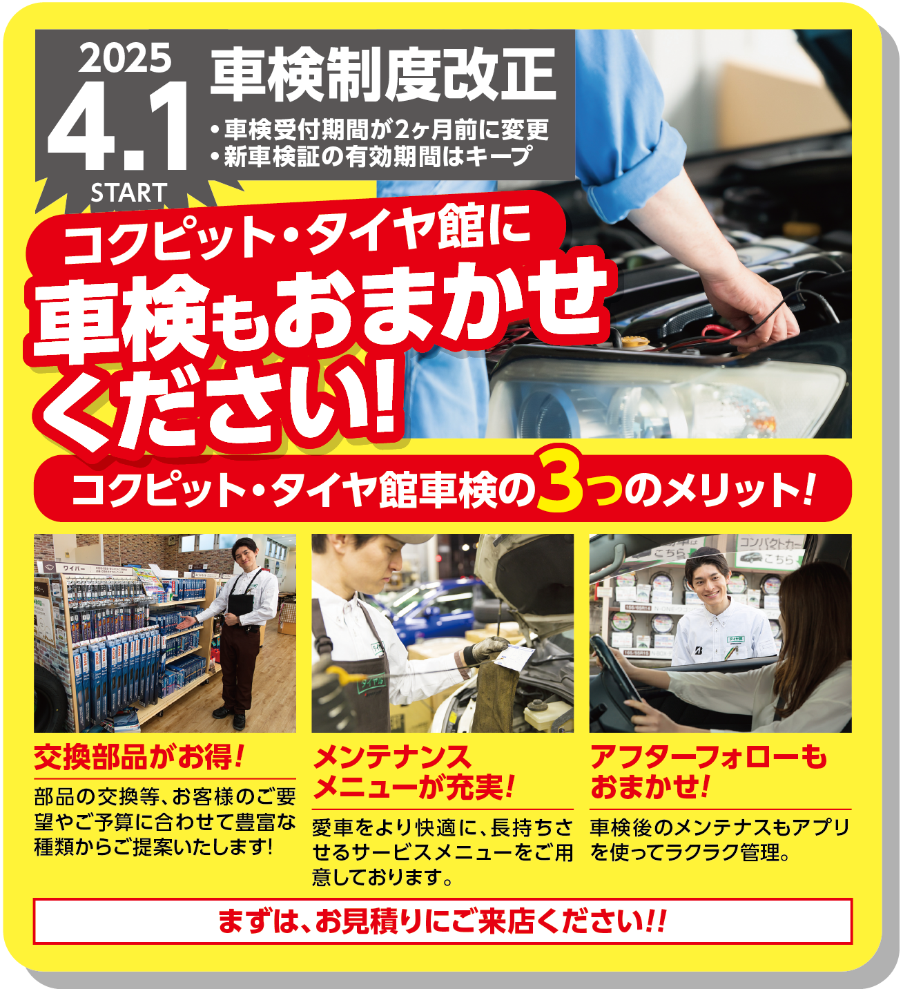 タイヤはもちろんメンテナンスもチラシ掲載されてますので