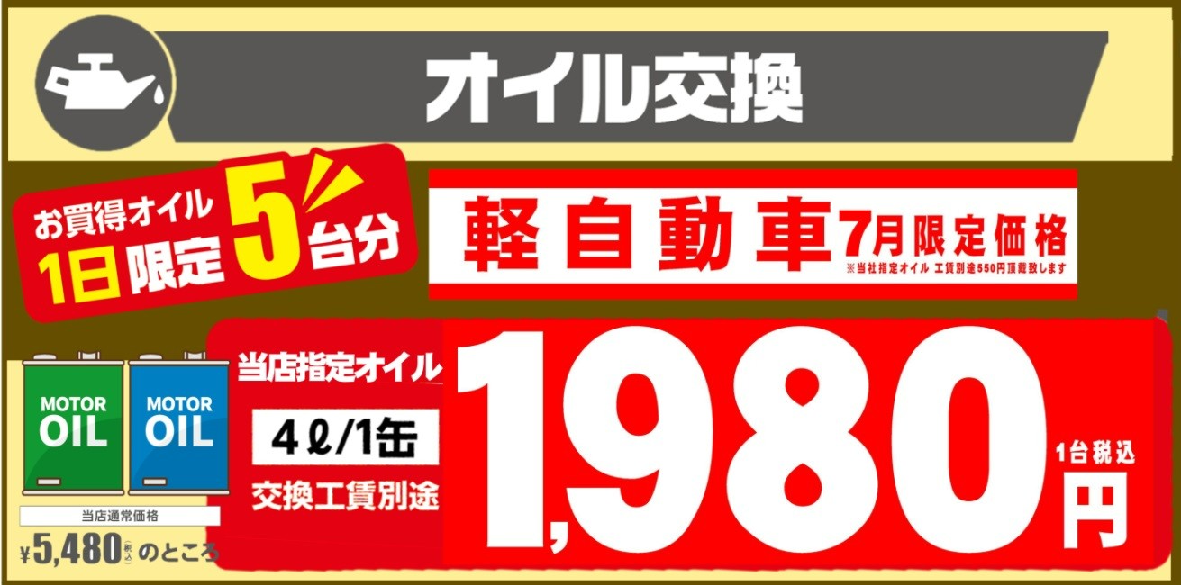 7月も限定オイル交換キャンペーン開催します!!